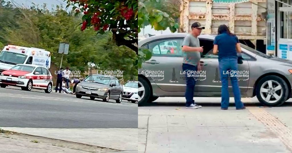 El percance se registró cuando una motoneta Vento y un automóvil Honda circulaban en dirección a la zona centro. En un punto del trayecto, uno de los conductores invadió el carril contrario, provocando la colisión que dejó al motociclista tendido sobre la carpeta asfáltica.