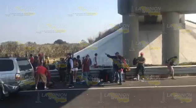 Los choques, ocurridos a las 15:30 de este sábado, se registraron en el carril sur-norte, siendo atendidos inicialmente por Protección Civil del Gobierno del Estado, además de los cuerpos de Bomberos de Úrsulo Galván y La Antigua.