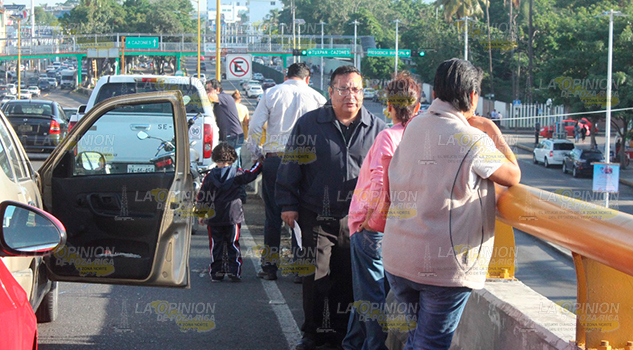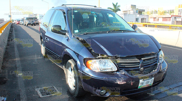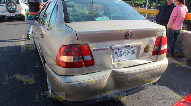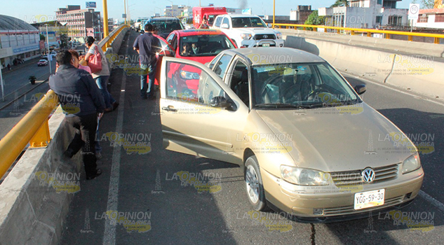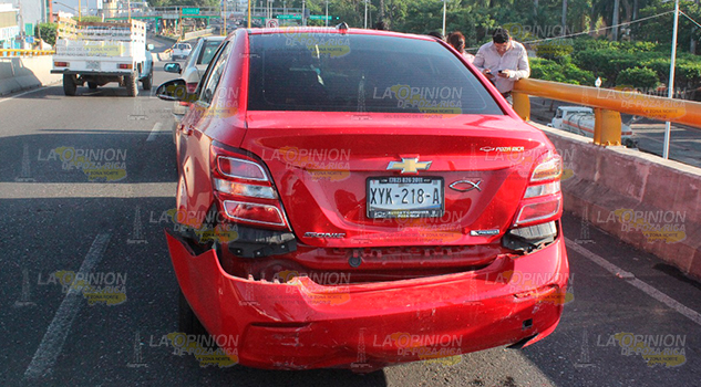 Poza Rica, Ver.- Fuerte accidente se registro la mañana de este martes sobre el distribuidor vial frente al parque Juárez, cuando una camioneta presento una falla mecánica quedándose sin frenos y golpeo por alcance a un Sonic y este a su vez a un Derby. El saldo una mujer policontundida y daños materiales por mas de 50 mil pesos.