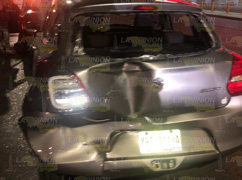Poza Rica, Ver.- Daños por más de 70 mil pesos, dejo como consecuencia una carambola de tres vehículos registrada la madrugada del domingo, sobre bulevar Adolfo Ruiz Cortines, justo en el semáforo que se ubica en la esquina con calle Michoacano de la populosa colonia Lázaro Cárdenas, donde el conductor de una camioneta Hilux, marca Toyota se durmió al volante y terminó estampado contra la parte trasera de un auto tipo Swift, Suzuki, que a su vez se proyectó sin control contra un Versa Nissan que terminó con la parte trasera destrozada.