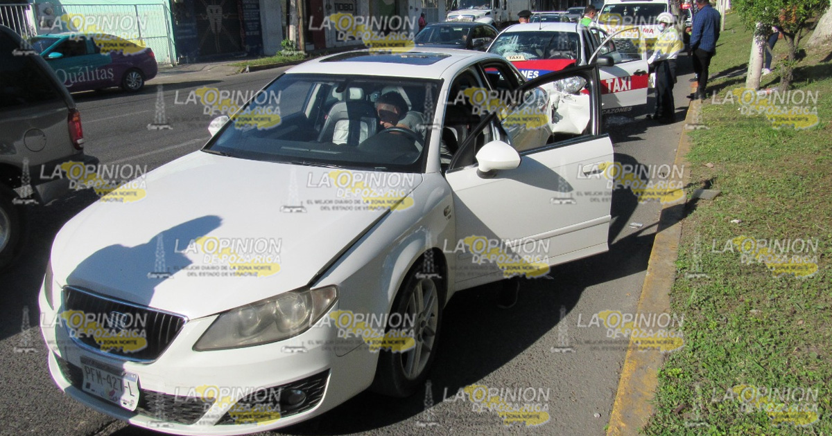 Poza Rica, Ver.- Minutos después de las 16:00 horas, de este 16 de noviembre, sobre el bulevar Adolfo Ruiz Cortines se dió un fuerte encontronazo, entre tres automóviles, los cuales tuvieron se golpearon sincronizadamente, ocasionado que pasajeros de un taxi quedaran policontundidos.