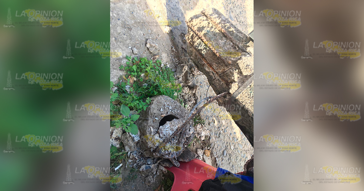 Tuxpan, Ver.- Un poste propiedad de Comisión Federal de Electricidad colapso debido a que su base estaba deteriorada, la vendedora resultó con golpes y crisis nerviosa.