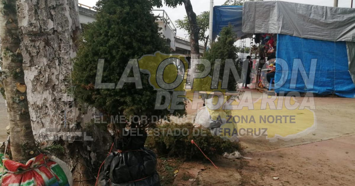 Poza Rica, Ver.- Vacía desde tempranas horas, lució la Plaza Navideña tras retirarse los vendedores de Tenango de las Flores, a quienes no les fue como esperaba, algunos abandonaron pequeños árboles y otros más no dejaron ni rastro en el lugar donde se encontraban.