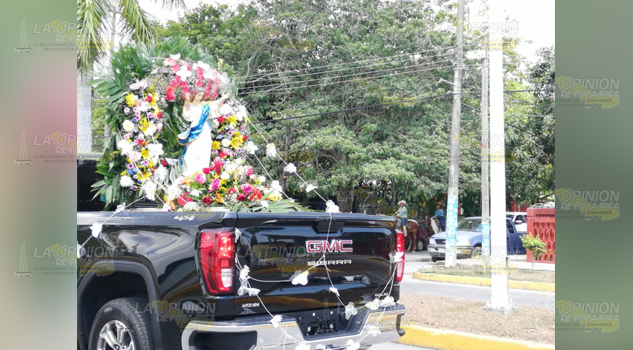Tuxpan, Ver.- Fieles católicos participaron en la fiesta patronal en honor a Nuestra Señora de la Asunción, patrona de la Diócesis de Tuxpan, a través de un pase por el río Tuxpan de la imagen de la Virgen y acompañándola en una procesión hasta la Catedral.
