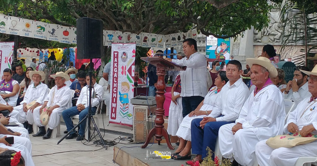 PAPANTLA, VER.- El gobierno municipal que preside el alcalde Eric Domínguez Vázquez, llevó a cabo este miércoles la celebración del «Día del libro en lengua tutunakú» el cual se realizó en el corazón de la ciudad el parque central Israel C. Téllez, con la presencia de distintas personalidades.