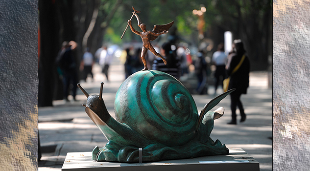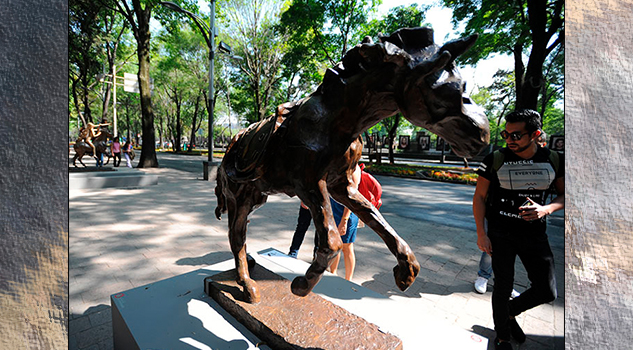 Tras haber pasado por el capitalino Paseo de la Reforma, la muestra del Museo Soumaya y la Fundación Carlos Slim se ubica ahora en el céntrico atrio de San Francisco, a los pies de la emblemática Torre Latinoamericana.