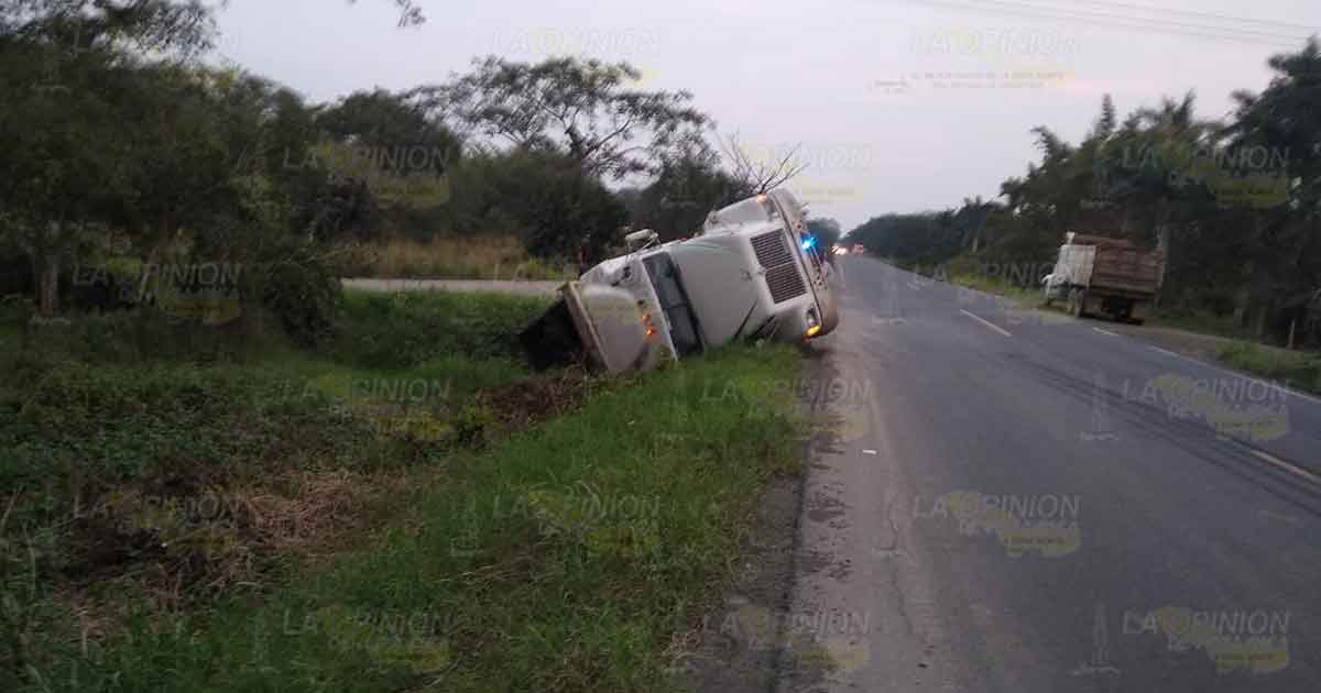 Cerro Azul, Ver. – A fuera de la cinta asfáltica de la carretera federal Tuxpan-Tampico, quedo un camión de volteo…