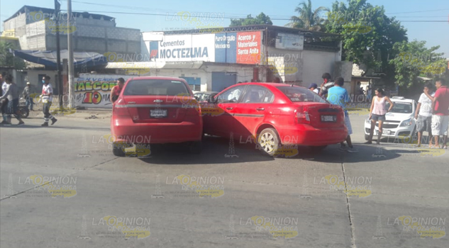 ÁLAMO, VER.- Un encontronazo entre dos automóviles ocasionó fuertes daños materiales y por lo menos, también, una persona con fuerte crisis nerviosa que ameritó la presencia de socorristas para su atención.