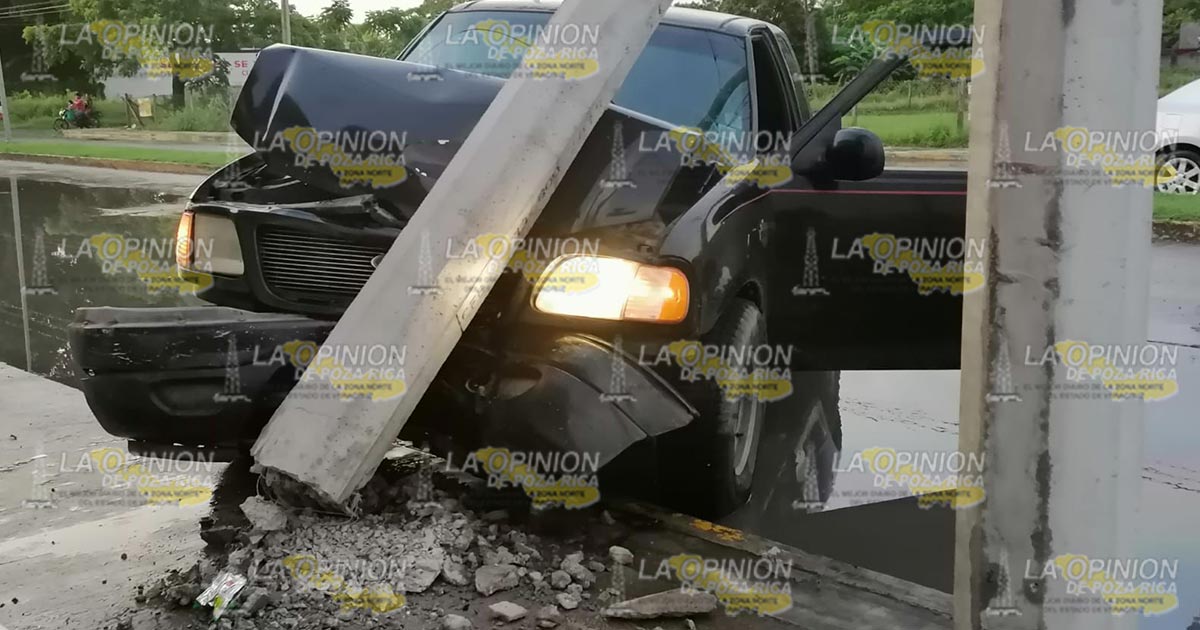 Álamo, Ver.- Un fuerte accidente se presentó la tarde-noche de este día, luego de que un imprudente conductor de una camioneta, quien manejaba a exceso de velocidad se impactó contra un poste de energía eléctrica a la altura del auto hotel Azares.