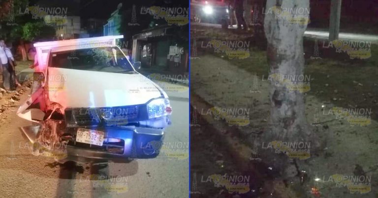 Choca contra árbol y resulta herido