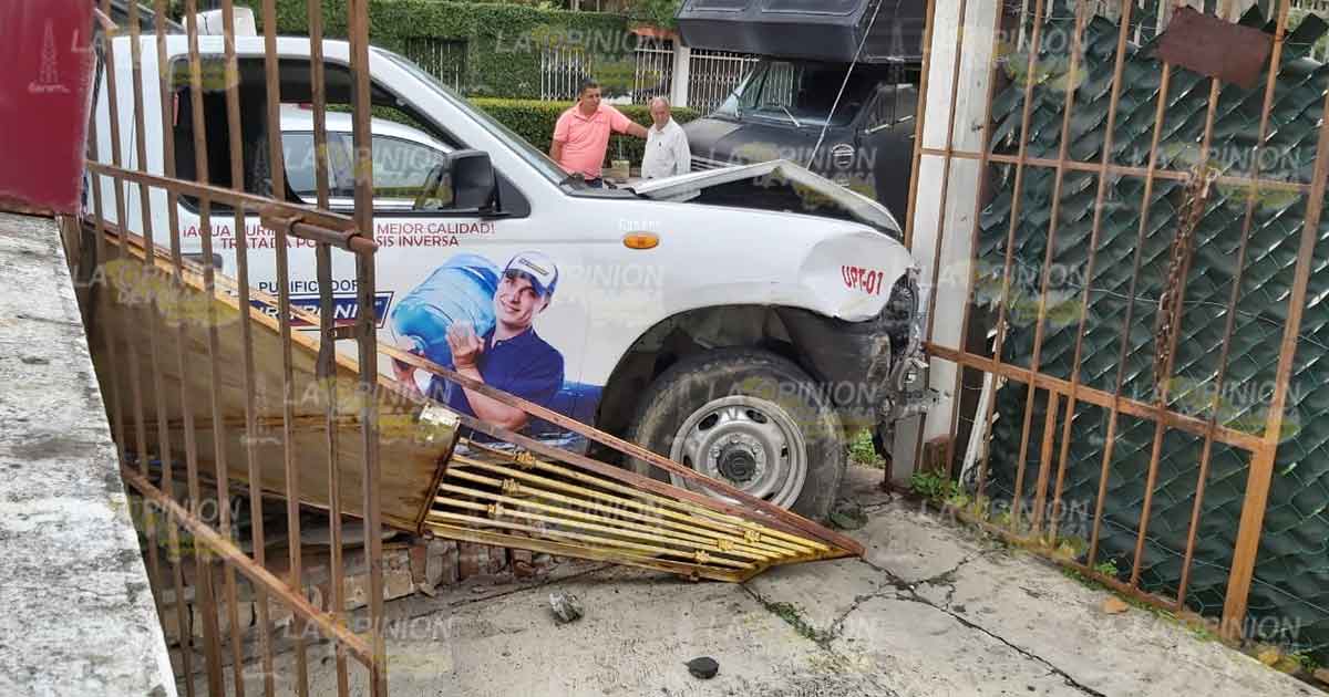 La unidad con logotipos de la purificadora Puritronic sufrió daños materiales superiores a los 15 mil pesos, al decir del chofer mencionó a su patrón que descendió para ir a entregar unos garrafones sin imaginar que el chalan le iba a dar el llavazo y esto originó que la unidad chocara contra el portón.