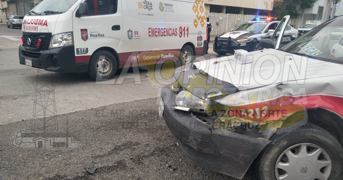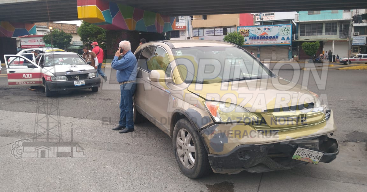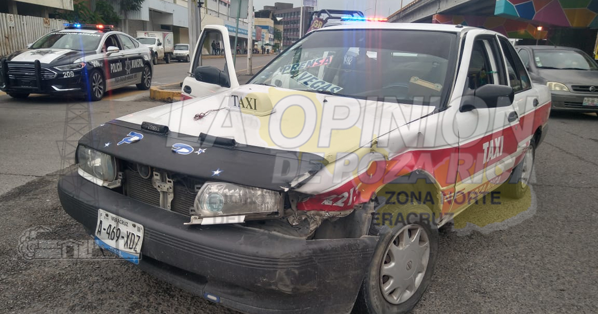 Poza Rica, Ver.- Dos pasajeros y un taxista resultaron policontundidos, luego de que esté se estrellara en la camioneta conducida por Máximino Téllez Marie, quien es hermano del ex secretario de seguridad pública Jaime Téllez Marie, quien tuvo el cargo en la administración de Miguel Ángel Yunes Linares.
