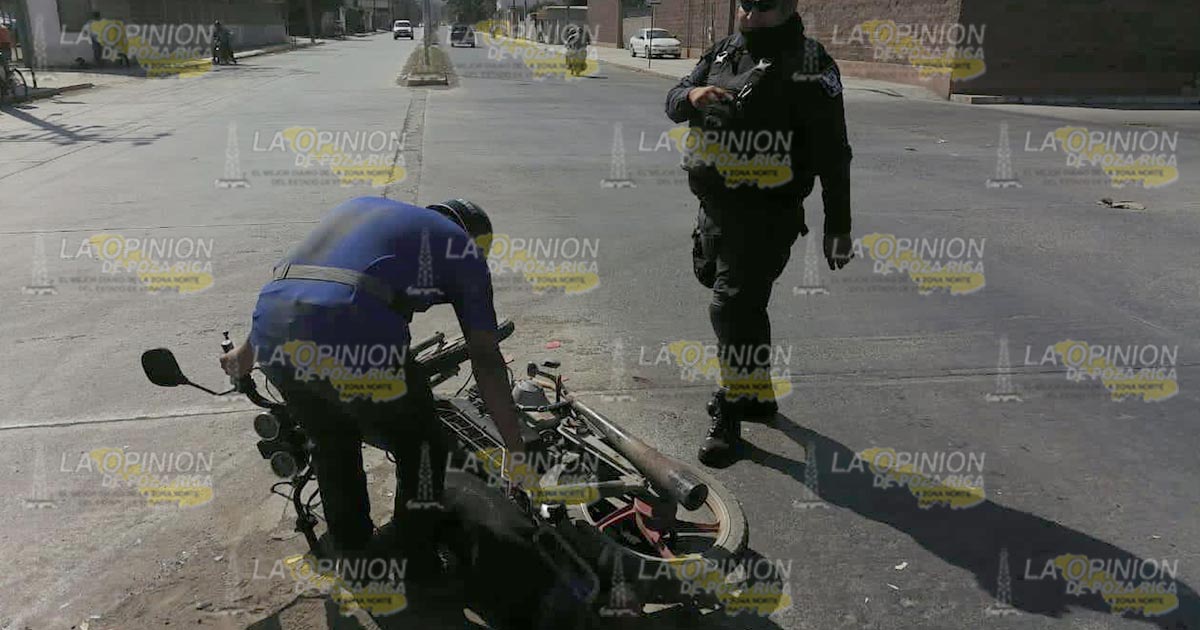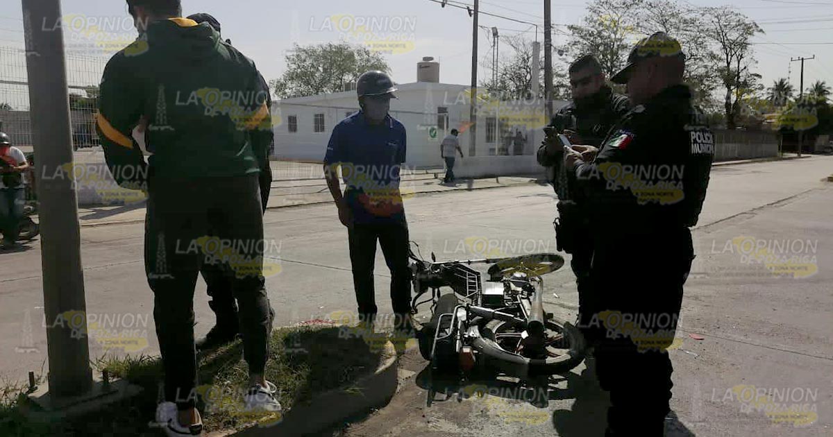Álamo, Ver.- La mañana de este jueves se presentó un accidente en el bulevar que va de Álamo hacia la localidad del Ídolo a la altura de la juguera Pro-Cutris, cuando el conductor de una motocicleta, quien viajaba a exceso de velocidad, se impactó contra un vehículo.