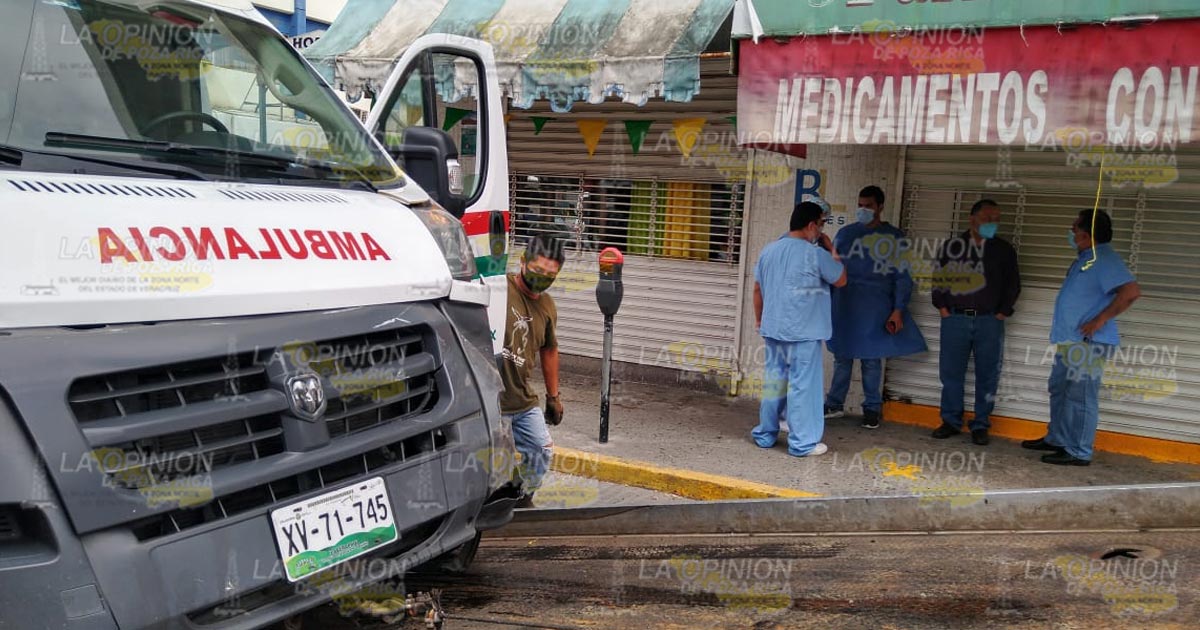 Poza Rica, Ver.- La falta de precaución de dos conductores ocasionaron que colisionaran sus unidades entre sí, uno de los protagonistas es la unidad de emergencia del personal de Pemex.