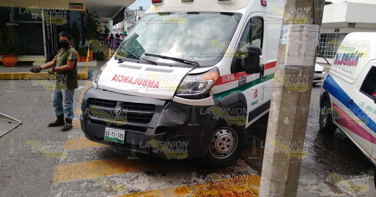 La unidad de emergencia propiedad de Pemex se desplazaba sobre la calle 6 norte con dirección al teatro de la sección 30, mientras que el conductor de una camioneta “comercializadora alegría” con razón social compacta circulaba sobre la calle 10 norte hacia los conocidos multifamiliares.