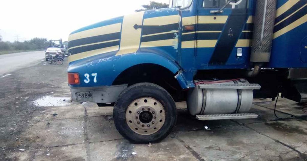 Los hechos se registraron aproximadamente a las 11:40 horas a orillas de la carretera federal Álamo-Alazán, a la altura de la localidad Adalberto Tejeda, cuando el Chevy se desplazaba a velocidad inmoderada, hasta que repentinamente su conductora perdió el control y acabó saliéndose de la cinta de asfalto para estamparse contra el tracto camión Internacional, color azul, con placas de circulación 259BM8, que se encontraba estacionado a la orilla de la carretera para su venta.