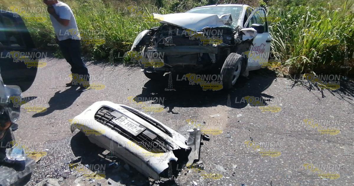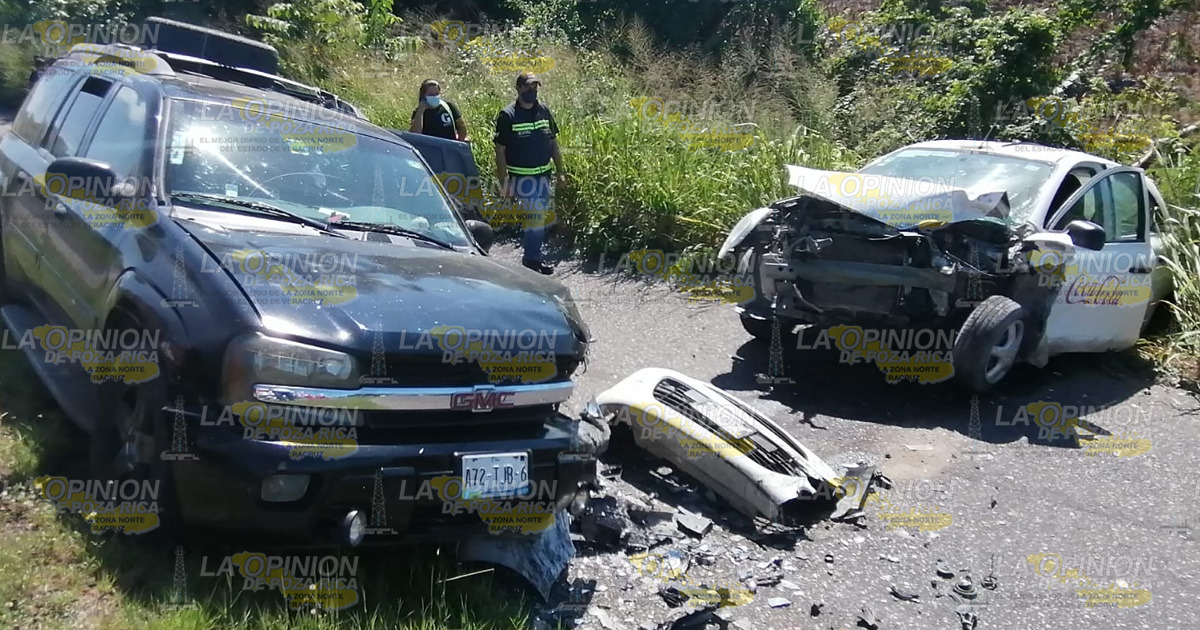 Papantla, Ver.- Aparatoso accidente se registró la tarde de este sábado sobre la carretera Poza Rica-Gutiérrez Zamora a la altura de la zona conocida como el cabeza Guagua donde dos unidades impactaron de frente dejando como saldo daños materiales por miles de pesos, así como varias personas lesionadas.
