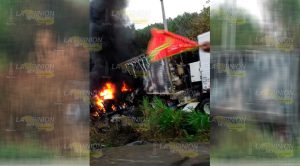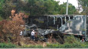 Brigadas de apoyo lograron sofocar el incendio del tráiler accidentado en el tramo Naranjos-Ozuluama, en tanto que la circulación vehicular se normalizó por completo en ambos sentidos de la vía.