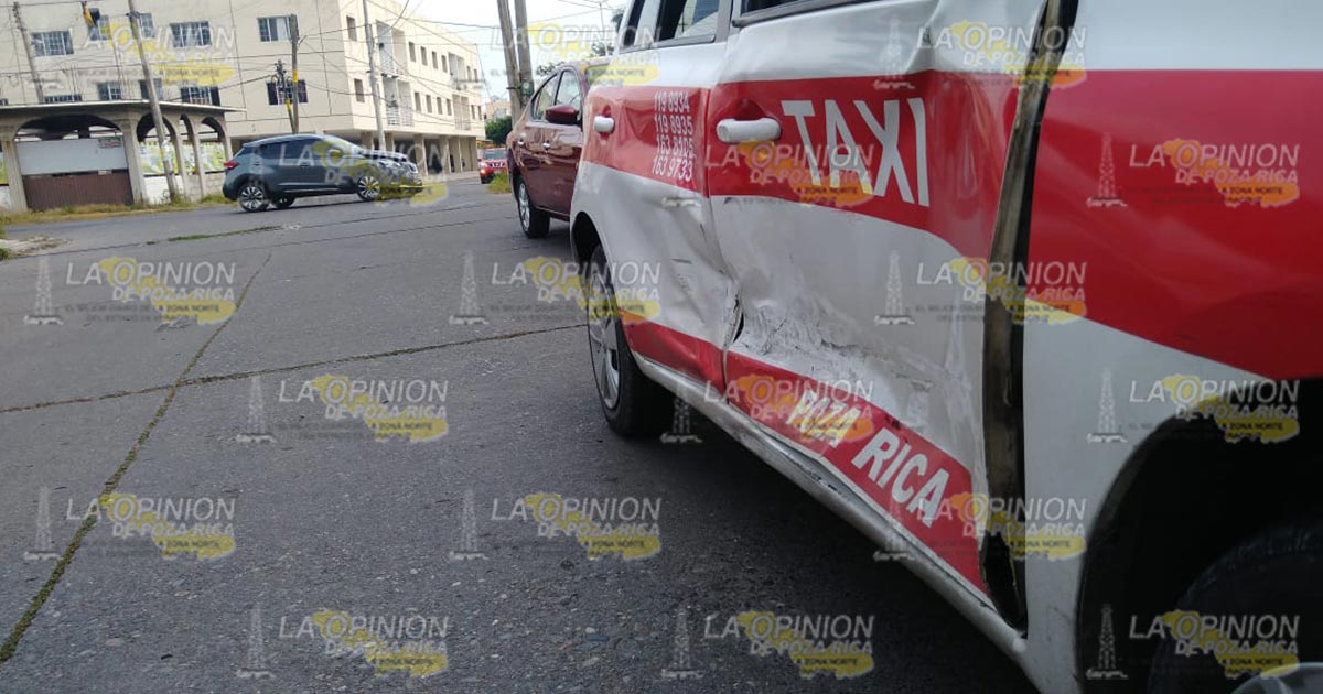 Poza Rica, Ver.- Fuerte encontronazo de una camioneta particular se estrelló en el costado de un taxi, se desconoce cuál de los dos conductores sea el posible responsable.