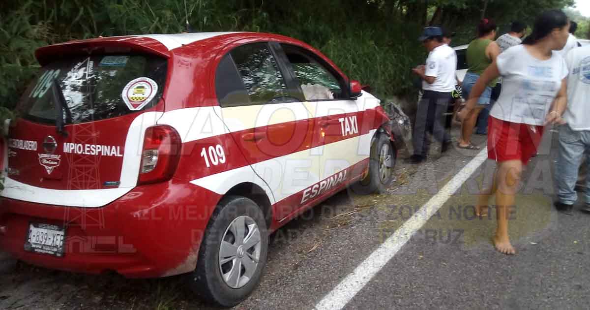 Espinal, Ver.- En este accidente se vieron involucrados un taxi y una motocicleta, ambos tripulantes de apellido Fajardo.