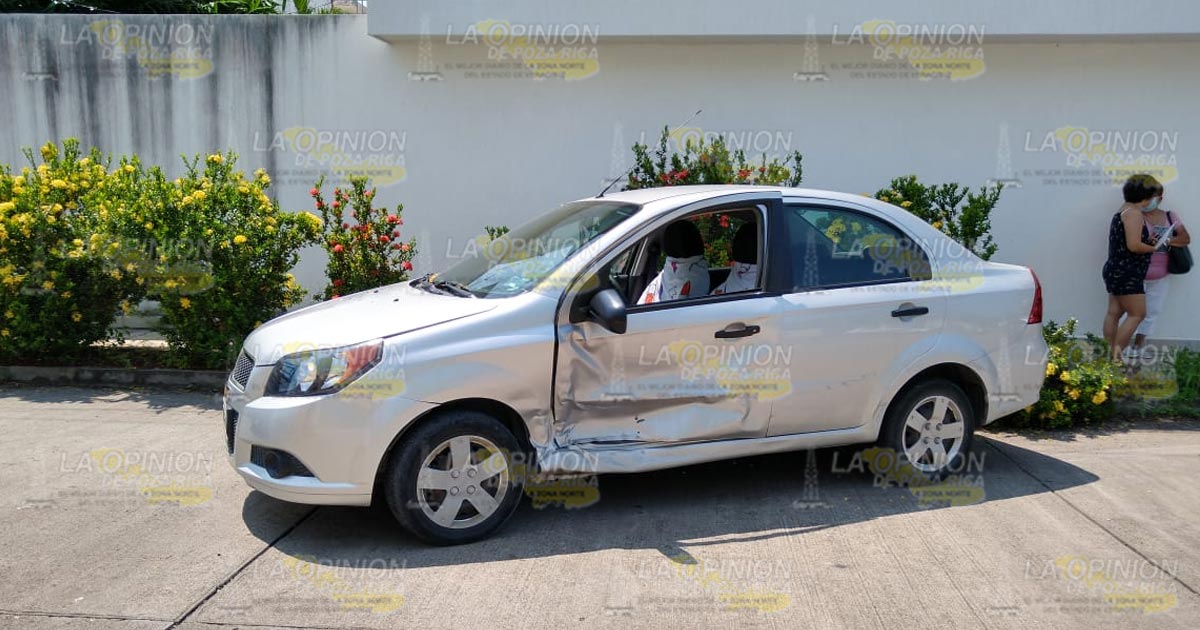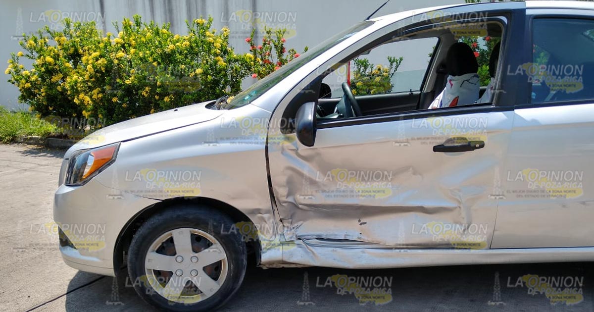 Poza Rica, Ver.- Elevados daños materiales en ambas unidades y por fortuna sin personas lesionadas, fue el saldo de fuerte colisión entre dos vehículos particulares.