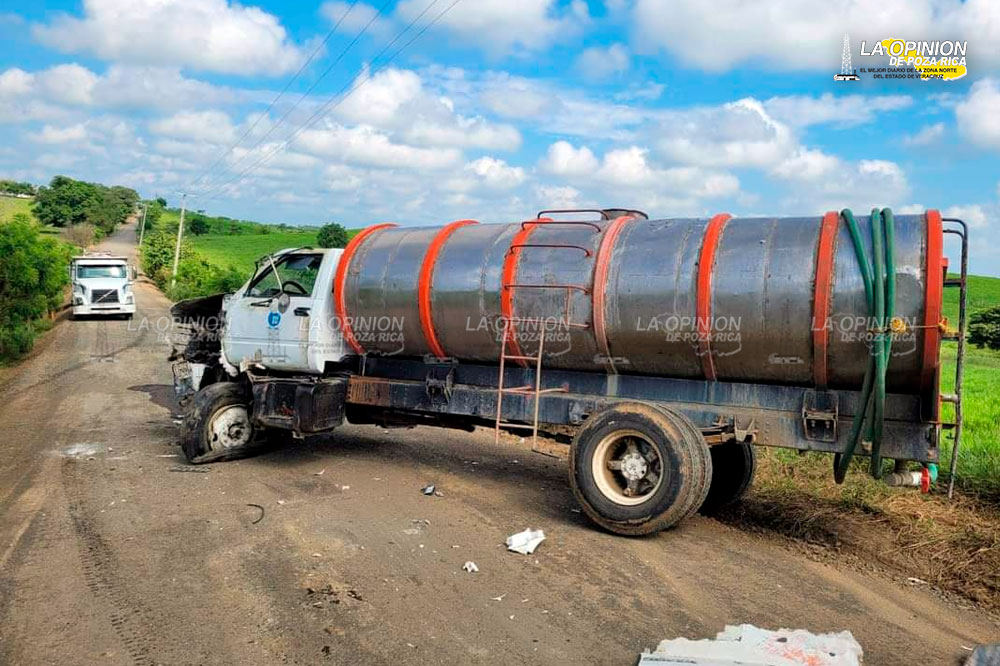 El accidente ocurrió cuando la pipa, por razones aún desconocidas, se salió de su trayectoria y terminó impactando de manera violenta contra el camión de volteo que se encontraba en la zona. El impacto provocó daños significativos en ambos vehículos, así como en el entorno cercano.