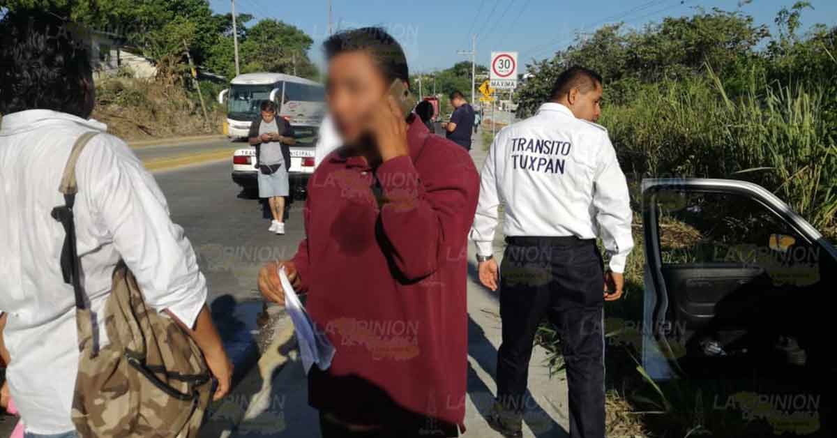 El vehículo afectado es el taxi número económico 960, matrícula A339XEK del Estado, guiado por Rubén Ramos Sánchez, de 54 años, vecino de la colonia Zapote Gordo de esta ciudad, el cual quedó con elevados daños materiales.