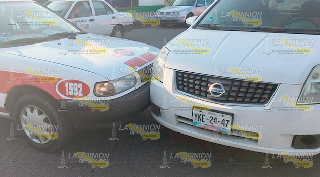 Un tsuru en su modalidad de taxi impacto a un sentra blanco cuando ambos conductores cruzaban la calle Costa Rica esquina con Nicaragua de la colonia 27 de septiembre.