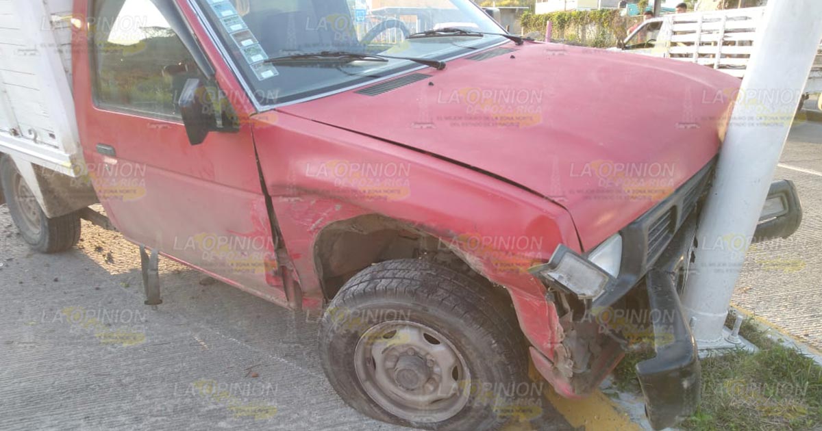Tuxpan, Ver.- Aparatoso accidente se registró en el libramiento de esta localidad dejando como saldo cuatro personas lastimadas y cuantiosos daños materiales; autoridades de Tránsito realizaron las diligencias correspondientes y aseguraron las unidades.