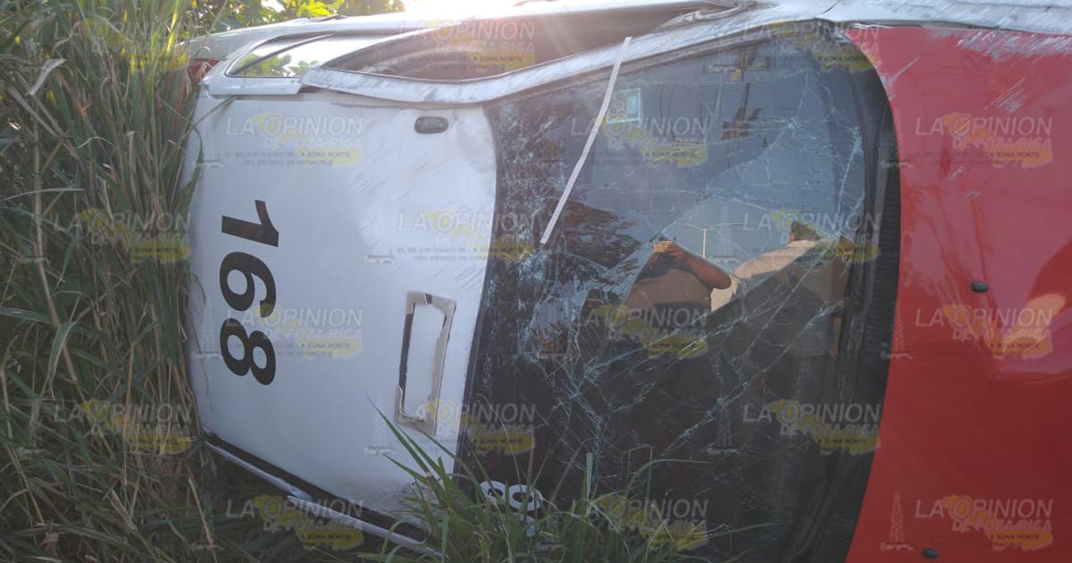 En el lugar colisionaron una camioneta Nissan tipo NP300 de redilas, de color rojo, matrícula XK1132A del Estado, cuyo conductor en apariencia se dio a la fuga y el taxi con número económico 168, sin placas de circulación.
