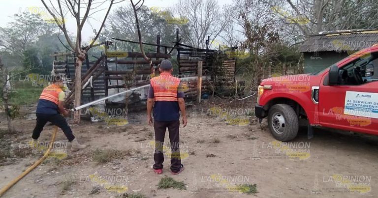Choza es consumida por un incendio