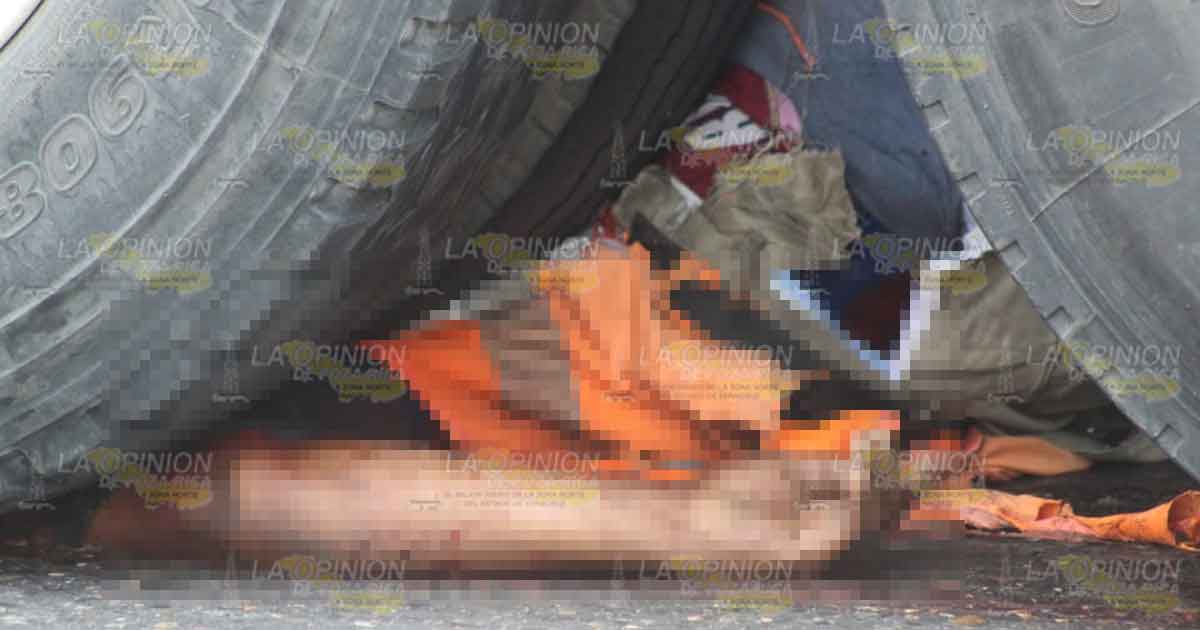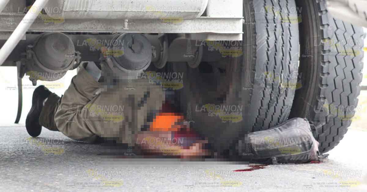 El hombre circulaba en una bicicleta color gris y llevaba una mochila en la espalda así mismo en una bolsa de mandado llevaba carne su cuerpo quedó entre los neumáticos traseros del lado izquierdo donde fue sacado por personal de Servicios Periciales.