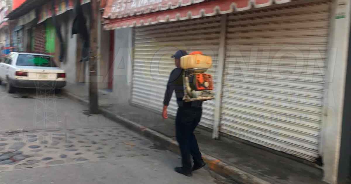 Coyutla, Ver. – Con la finalidad de reducir los contagios por SARS-CoV-2 (Coronavirus), los negocios fueron cerrados y la policía municipal se encuentra desinfectándolos, así como los espacios públicos, calles del centro de Coyutla, además en coordinación con el enlace de Protección Civil del Estado, continúan invitando a la gente a que no salga de sus hogares.