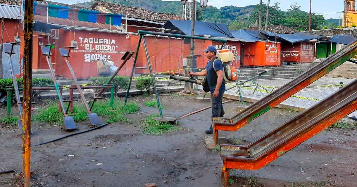 Es por eso que todos los establecimientos del centro de Coyutla fueron cerrados y solo se quedaron abiertos las farmacias, los elementos de la policía municipal están fumigando los espacios públicos, como el parque Reforma, así como las calles del centro de esta comunidad, además se invita a las personas que pasen a los módulos sanitizantes que se tienen frente al palacio municipal, sobre la avenida Independencia y en la calle Escuadrón.