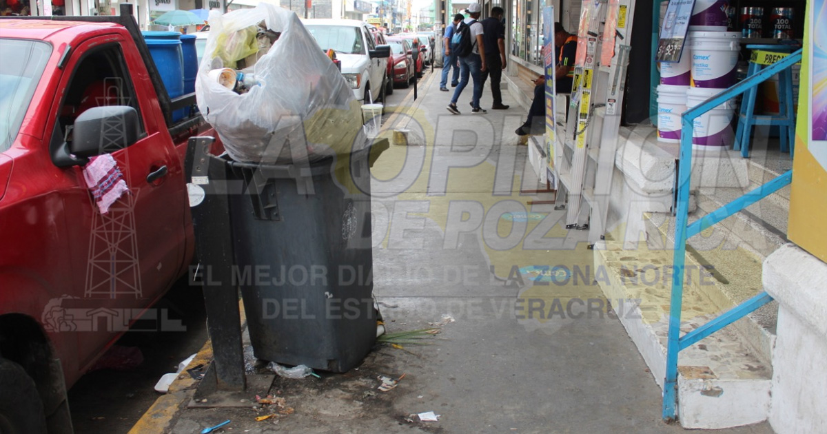 Mientras que algunos botes de basura son ocupados como contenedores , por lo que ciudadanos arroja enormes bolsas de desechos rebasando el límite de espacio, esparciendo los mismos, en la zona centro de la ciudad.
