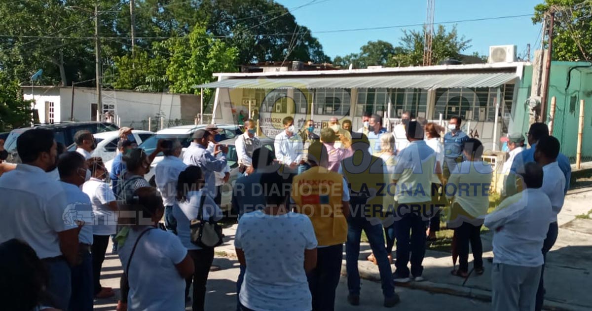 Afuera de las instalaciones de la Caev en la colonia Primero de Mayo durante la mañana de este miércoles el titular de la Comisión de Agua del estado de Veracruz al término de una reunión privada que tuvo con autoridades de Cerro Azul, Naranjos, atendió a la ciudadanía que acudió a fuera de la dependencia para exponer algunas situaciones.