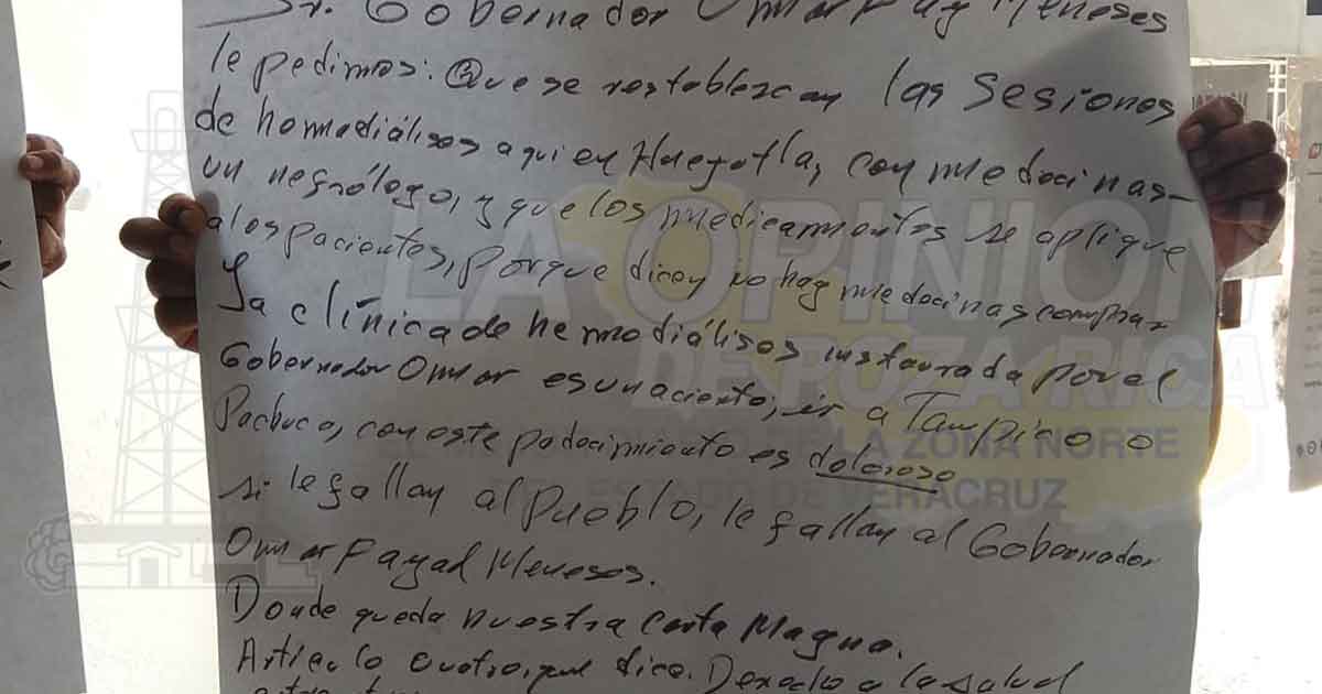 En el pliego petitorio, los pacientes y sus familiares solicitan los servicios permanentes de un Cardiólogo y un Nefrólogo a efecto de que esta clínica, en el que se invirtieron 20 millones de pesos para su instalación, ofrezca un servicio de calidad que merecen los huastecos.