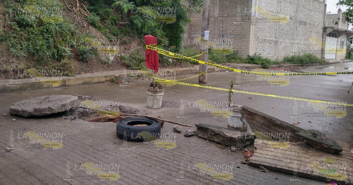 La tapa del drenaje fue levantada y el drenaje se encuentra a cielo abierto, lo que representa un riesgo para niños y adultos mayores, quienes podrían caer al fondo del mismo, debido a que no existe un señalamiento que advierta sobre el riesgo al que se enfrentan.