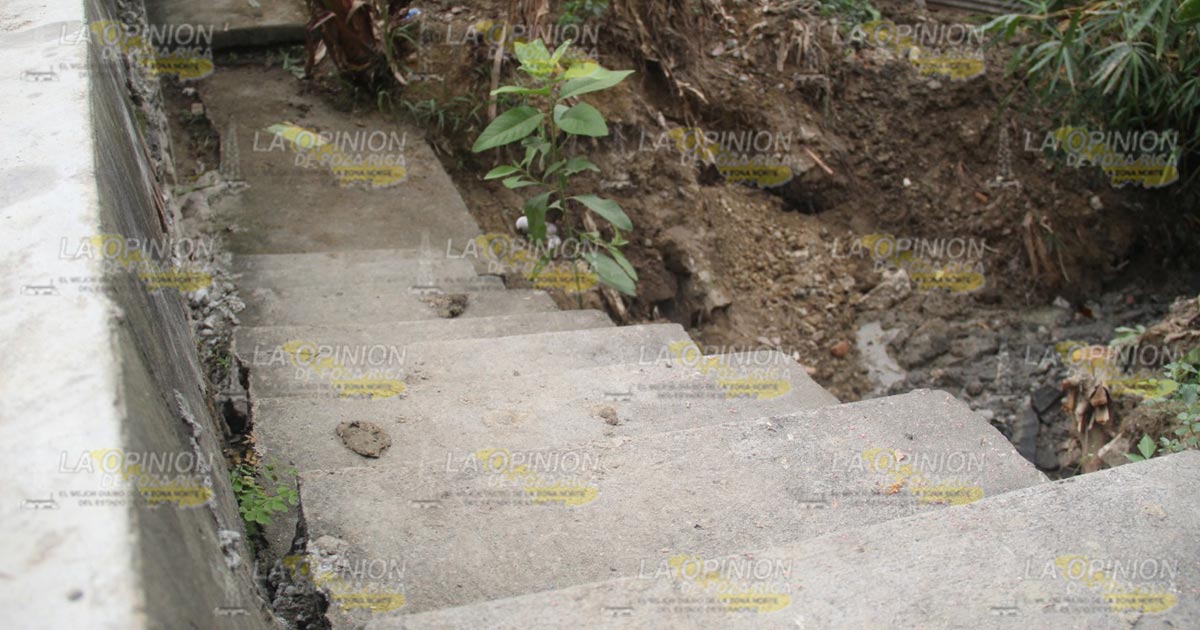 Poza Rica, Ver.- Afectados solicitan el apoyo de las autoridades ante el colapso de las guarniciones y banquetas de la calle Zaragoza de la colonia Francisco l Madero, mismas que se encuentran en peligro al transitar por este lugar personas de todas las edades, que debido a las lluvias las escaleras peatonales se vinieron abajo, poniendo en peligro a las familias que habitan cerca del lugar.