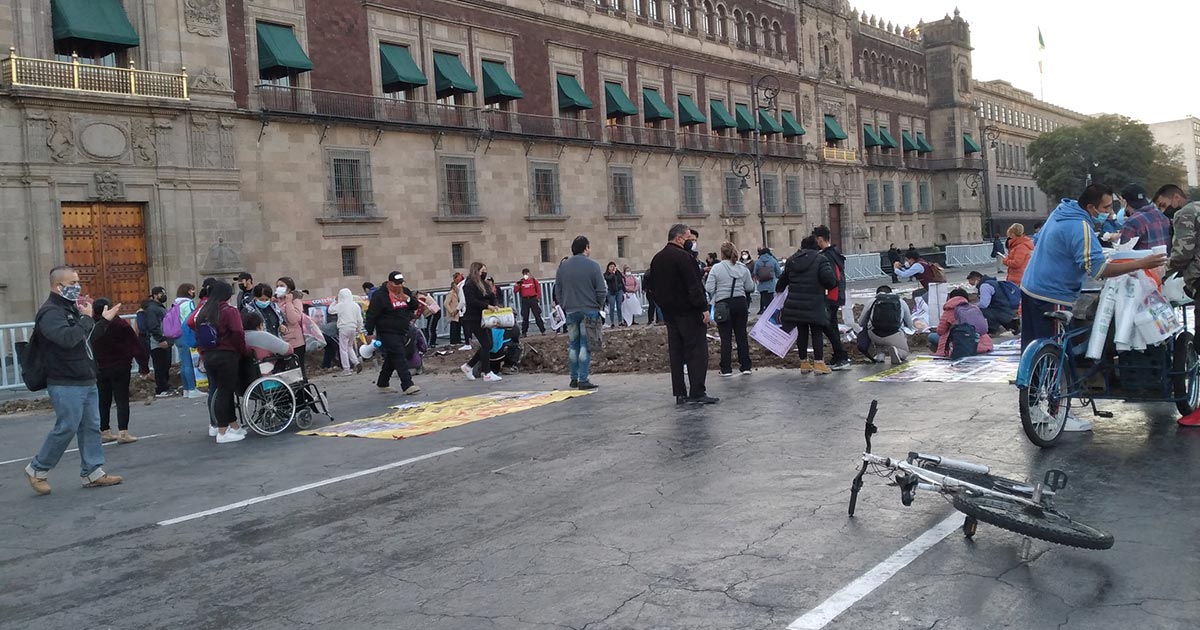 Cerca de 30 personas se reunieron este lunes poco antes de las 07:00 horas para exigir una audiencia con el mandatario, mientras que un camión de volteo descargó montones de tierra frente a Palacio Nacional para simular la creación de fosas clandestinas que abundan en el país.