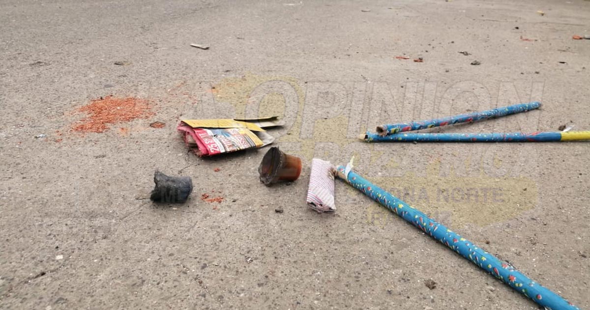 La tradición de quema de explosivos en el municipio, se hizo notar la mañana de este primero de enero, con la gran cantidad de basura en las calles de las colonias del centro y la periferia de está ciudad petrolera, aunado a la pólvora que se quedó regada por los sitios donde festejaron la llegada del año nuevo.