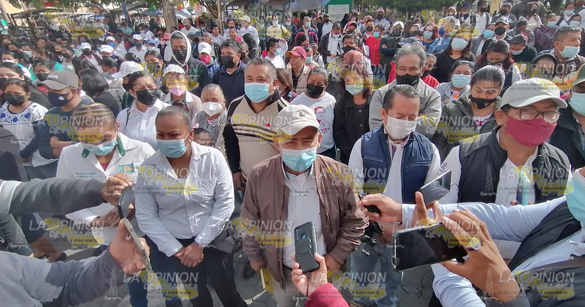 Papantla, Ver.- Integrantes de la unión de comerciantes ambulantes y betuneros de este municipio, se apostaron a las afueras del palacio municipal, para darle la bienvenida a los integrantes de la nueva comuna, señalando que trabajarán de la mano con el alcalde Eric Domínguez Vázquez.