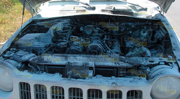 Álamo, Ver.- La mañana del sábado, una falla en el sistema eléctrico originó un corto circuito que por poco incendia una camioneta Jeep, tipo Liberty, sobre la carretera federal Álamo – Alazán; por fortuna todo quedó en simple conato y en tremendo susto para la familia que viajaba en el vehículo.