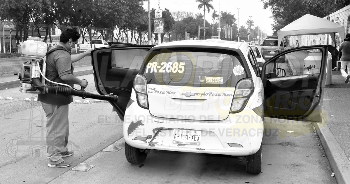 Poza Rica, Ver.- Con el propósito de prevenir riesgos de contagio a la población con motivo de la pandemia provocada por el virus Sars-Cov-2 (COVID-19), y ante la prevalencia de riesgo de proliferación de la enfermedad, el Gobierno de Poza Rica mantiene abierta la invitación para los concesionarios y trabajadores del volante en la modalidad de taxi, a fin de que saniticen sus unidades automotoras.