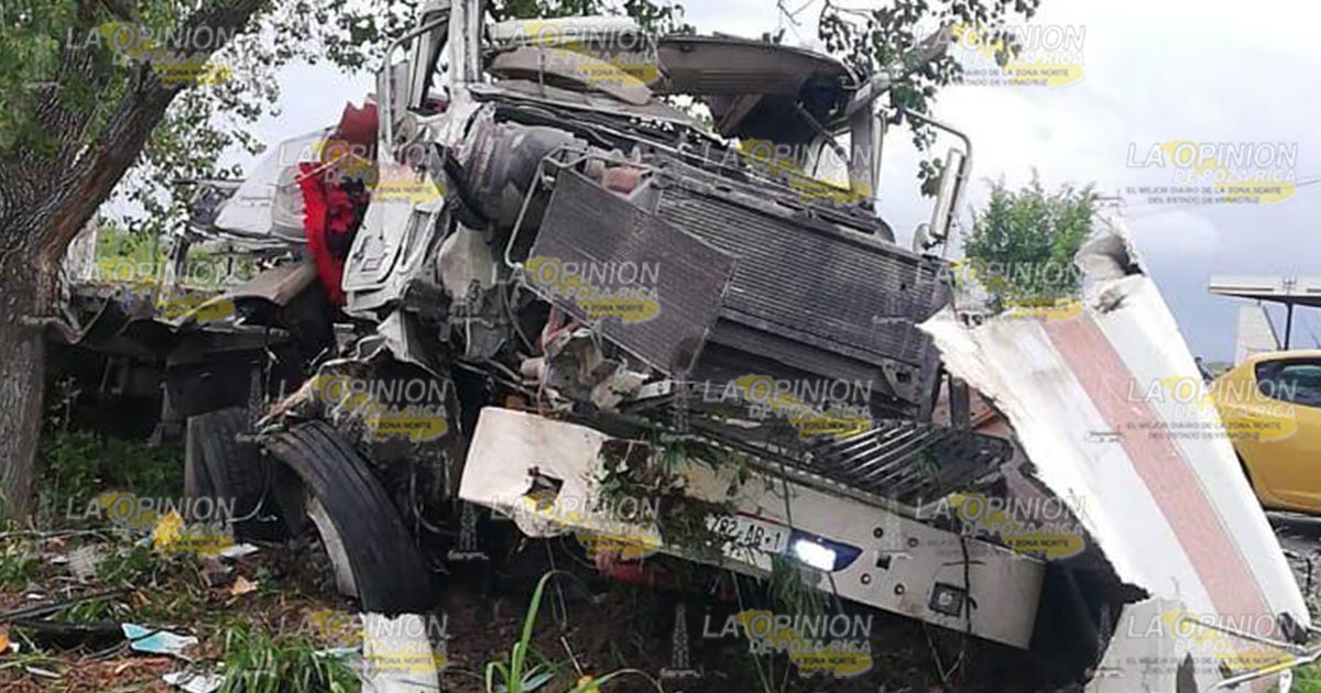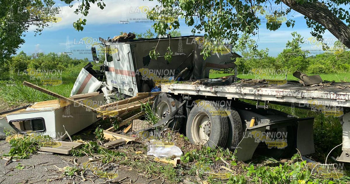 Álamo, Ver. – Un fuerte accidente se presentó en la carretera federal Álamo-Tihuatlán a la altura del ejido la Unión cuando el conductor de un tráiler de carga perdió el control luego de quedarse dormido al volante y este se impactará de frente contra un enorme árbol, solo se registraron cuantiosos daños materiales.