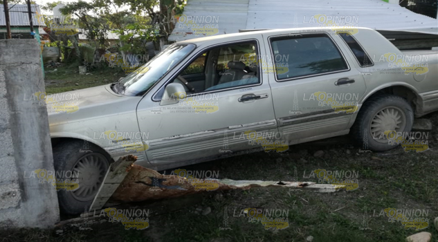 Tuxpan.- Conductor que trataba de esquivar un registro para drenaje perdió el control de su automóvil y terminó estrellado en la mufa y galera de una vivienda, por fortuna no hubo víctimas que lamentar y personal de Tránsito tomó conocimiento.