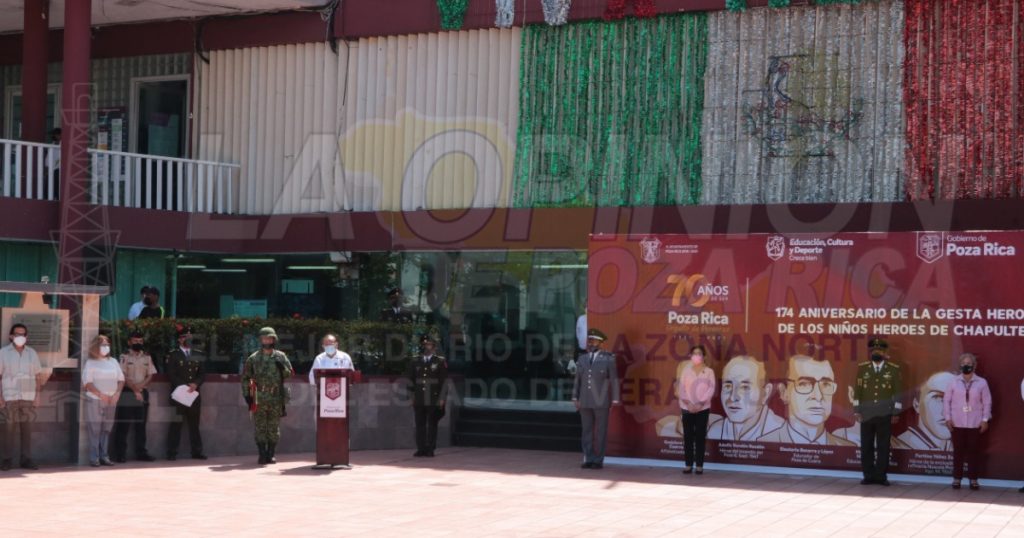 “Hoy más que nunca, la patria nos llama a estar unidos ante la adversidad; hacer honor a nuestros cadetes es seguir su ejemplo. México en nuestros tiempos no nos llama a las armas, nos llama a las herramientas, al estudio, a la solidaridad, a la buena voluntad”, expresó la autoridad, quien convocó “Al pueblo de Poza Rica a seguir luchando contra las dos crisis que nos aquejan. Contra la crisis sanitaria seamos solidarios, acudamos a vacunarnos, usemos el cubrebocas, guardemos la sana distancia, vivamos nuevas fiestas patrias en familia, con responsabilidad, ayudemos al personal médico, al sector salud en general, a contener el avance de la pandemia.