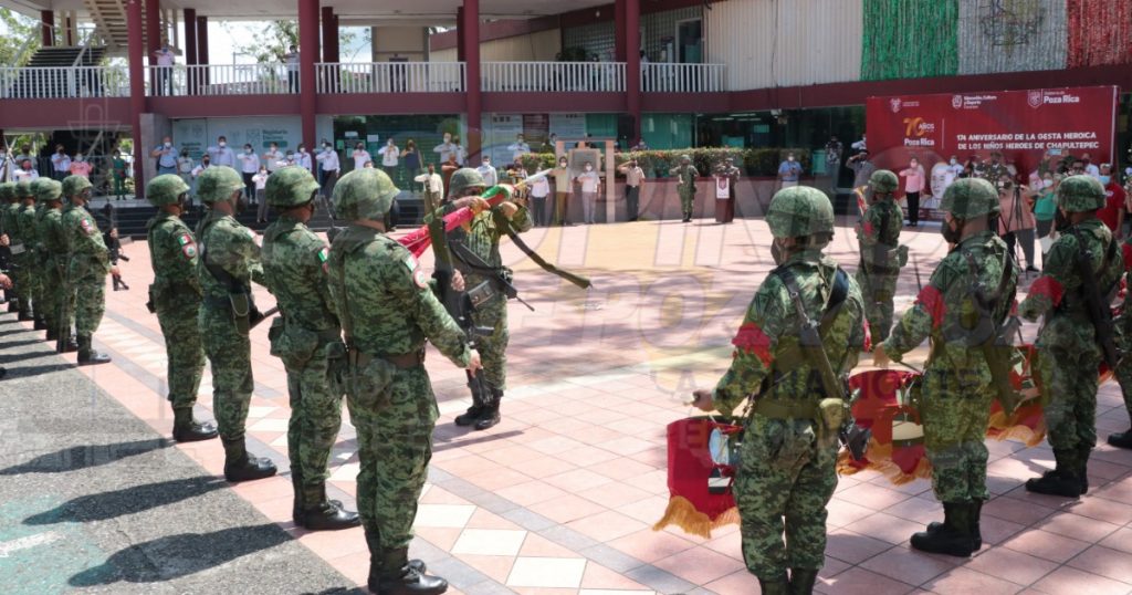 En ese sentido, recordó a los cadetes caídos en defensa de la libertad, la soberanía y el territorio nacional. Muy jóvenes, prácticamente eran unos niños, cuando debieron enfrentar la metralla enemiga. Y fue hace 174 años cuando mercenarios y enemigos de la libertad, comenzaban el ataque contra el Colegio Militar, defendido por los cadetes, Vicente Suárez Ferrer de 13 años de edad quien daba cuenta de los primeros invasores, quienes minutos después lo acribillaban. Más tarde en feroz lucha caerían también Juan de la Barrera, de 19 años, Agustín Melgar apenas cumplidos los 18, Fernando Montes de Oca, también de 18 años, Juan Escutia de 20, y el más joven, Francisco Márquez Paniagua con 12 años cumplidos, al ser asesinado. Al tiempo de recordar que, en Veracruz, también se tuvo un episodio de demostración del valor patriótico de los jóvenes con Virgilio Uribe y José Azueta, en defensa de la soberanía nacional