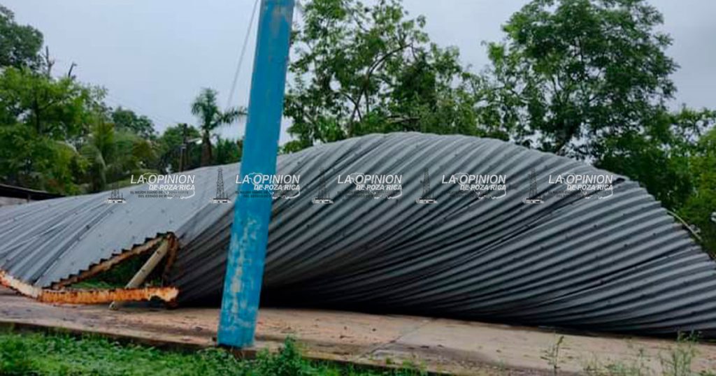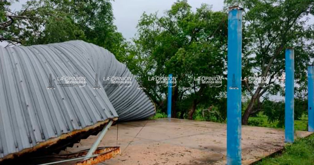 NARANJOS, VER.- El colapso del techado del auditorio de una comunidad, así como severos daños en otros puntos de Naranjos son las afectaciones que hasta el momento han dejado las lluvias y viento que se ha venido presentando en este municipio.