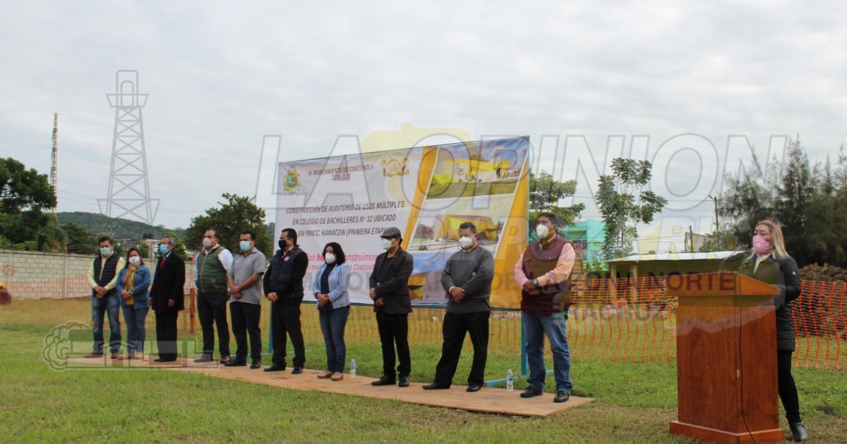 Coatzintla, Ver. – La presidenta municipal ingeniero Patricia Cruz Matheis colocó la primera piedra de lo que será el auditorio de usos múltiples, en las instalaciones del COBAEV 32 ubicado en el Infonavit Kawatzin, con lo que se dará fuerte impulso a la cultura, sobre todo al teatro, ya que el plantel cuenta con un grupo que ahora ya es reconocido como «Compañía Oro Negro», a cargo del profesor José Alberto Cruz Solís.